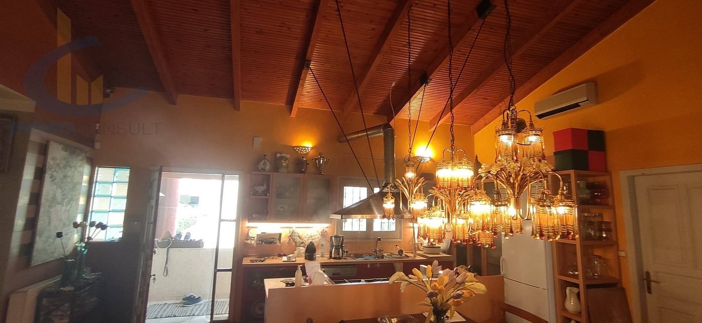 Detached house in Kalamaki 800 m from the beach in a quiet area near a park, 240 sqm, year of construction 1995, with double glazed floors, autonomous gas heating, ground floor and 1st, aristocratic high ceiling, on a plot of 400 sq.m. The first floor consists of a large living room with 2 living rooms, fireplace, dining room, kitchen with living room, 2 bedrooms and 2 bathrooms. The ground floor is an open space, kitchen and 2 bathrooms, fireplace, bright, can be easily converted into an apartm...