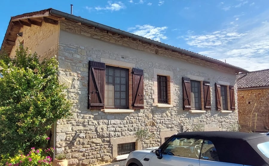 Slightly further north of Carcassonne lies this three-bedroom property in the hamlet town of Puycelsi. The property is split into two independent levels. Downstairs, there are two bedrooms, a lounge, a shower room, a WC and a utility. Upstairs, there’s a spacious living room with a wood burner, a fitted kitchen and a large bedroom with an ensuite and dressing room.
