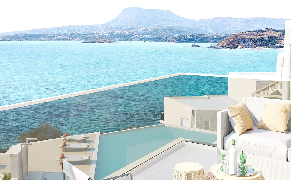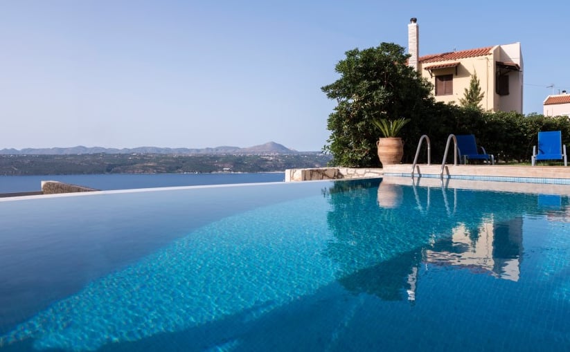 Situated on the top of a hill, this magnificent villa benefits from unobstructed views of not just Crete’s White Mountains but of the Mediterranean Sea.