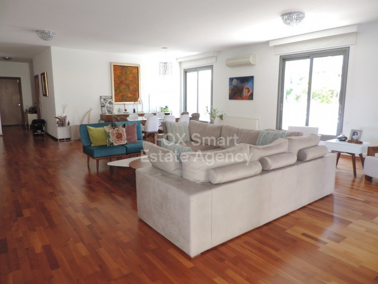 This is an extraordinary house-like apartment in a perfect condition and many amazing features.It is located at the ground-floor of a modern residential building in the very desired area of Ayios Andreas.The apartment has 219sq.m! of internal areas, 41sq.m of covered verandas, 41sq.m of uncovered verandas and 159sq.m of private yard. (on the title)It consists of a spacious dining and sitting room which is connected to the main balcony and the yard, a separated and equipped kitchen with its own b...