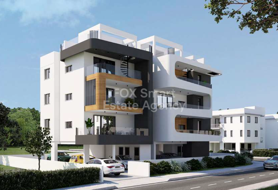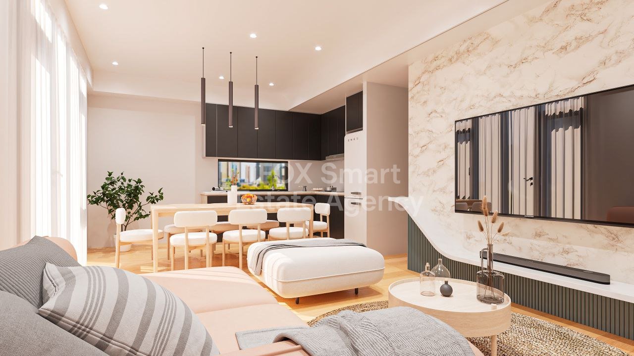 Contemporary-style 1-bedroom, 1-bathroom apartment under construction in a residential area of Aradippou, with completion expected in March 2027. The apartment features a bright open-plan kitchen and living area, a comfortable bedroom, a main bathroom, and a large covered veranda ideal for relaxing or entertaining. Additional benefits include covered parking and a private storage room, making it an excellent choice for both homeowners and investors.
