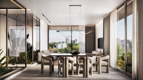Spacious and stylish 3+1 bedroom apartment in the 5th floor of 6th floor building in the heart of Nicosia, offering 150㎡ of high standard living space. Each bedroom features a private en suite bathroom. Includes an extra office room, a premium kitchen, internal garden area, and private building entrance. Enjoy the convenience of photovoltaics, two dedicated parking spaces, and a prime central location.