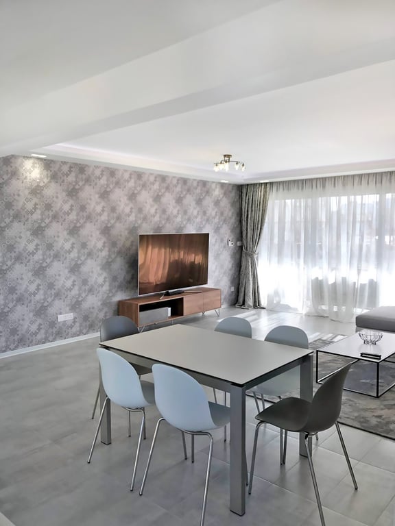 Nested In Neapolis area 200 meters from the beach this modern and spacious 180㎡ three bedroom apartment comes fully furnished including appliances, chandeliers, two large smart TV’s. There are two large terraces to enjoy, one with a small garden the unit features in floor heating and a DAIKIN air-conditioning system with doors, Wardrobes from Italy. Laufen plumbing, a fenced complex, with private parking space and large storage room. Minutes away from a large supermarket AlphaMega and a large gy...