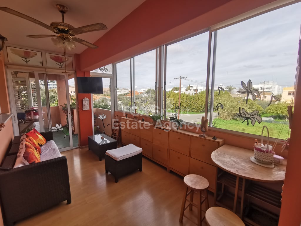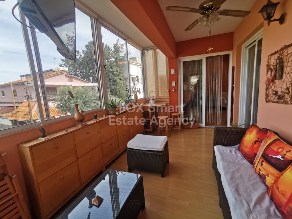 ๐ Location Located in the heart of Strovolos, this apartment enjoys a prime central position with easy access to Strovolou avenue and Eleonon street. Despite its central location, it sits within a small residential building, offering privacy and a quieter living environment. ๐ Internal Characteristics Internal area: 104 m2 Covered veranda 20 m2 1st-floor apartment 3 spacious bedrooms 1 WCs / bathrooms 1 Guest toilet Bright and open living & dining area with elegant architectural lines Central...