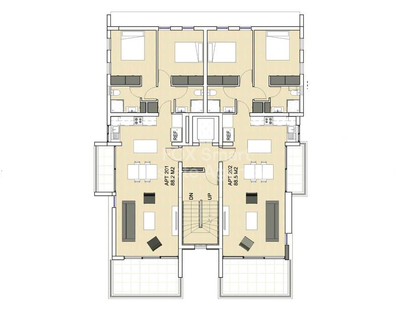 Under Construction 2 Bedroom spacious Apartments of 88m2 internal area and 13 - 14m2 covered verandas, prime located just 800m. from Finikoudes, in Larnaca center. The apartments are on the 2nd floor and offer open plan living areas, 2 bathrooms, en suite master bedroom,1 covered parking space and 1 storage room on the ground floor and are part of a 5-storey high end corner Residential Building of 10 units. Excellent location, within walking distance to public and private schools, supermarkets...