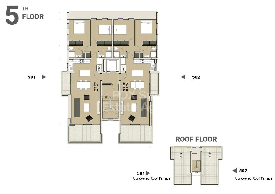 Under Construction 2 Bedroom spacious Apartments of 88m2 internal area, 11-13m2 covered verandas and 51-54m2 Roof Garden area, prime located just 800m. from Finikoudes, in Larnaca center. The apartments offer open plan living areas, 2 bathrooms, en suite master bedroom,1 covered parking space and 1 storage room on the ground floor and are part of a 5-storey high - end corner Residential Building of 10 units. Excellent location, within walking distance to public and private schools, supermarket...