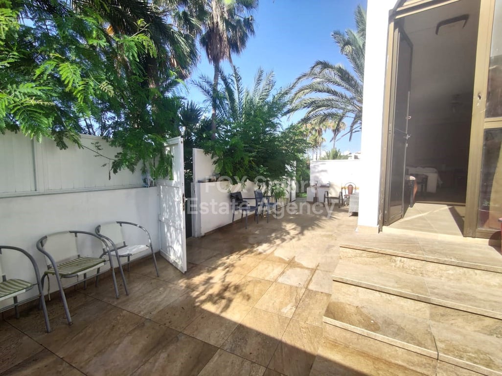 3 Bedroom Douplex Beach Front Apartment of 124sq.m. internal area in Dekelia. The elevated ground floor comprises an open plan living, dining and kitchen area, 1 bedroom and 1 bathroom and the semi basement level (connected with internal staircase, offering also a separate entrance and a veranda) features 2 bedrooms, 1 large bathroom and an open plan living and kitchen area. The apartment benefits of it's spacious front veranda and the garden area that leads directly to the beach. The property...