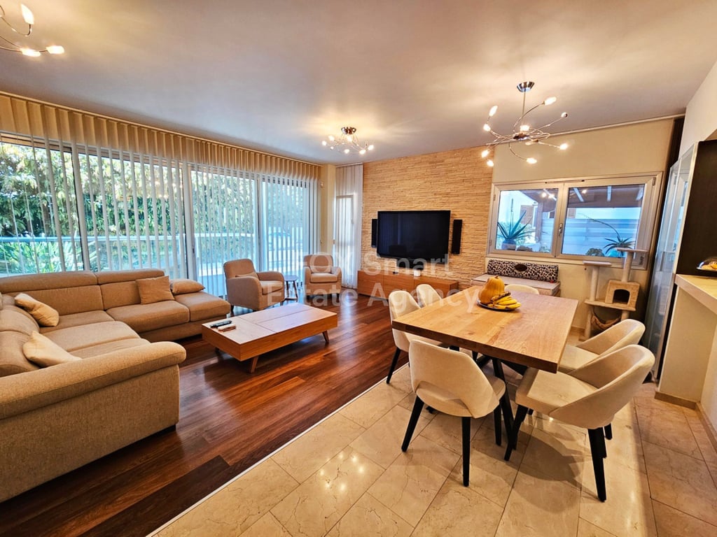 Words might not be enough to describe such an extraordinary house-like apartment, in perfect condition in a top location, but we will give it a try. It is located at the ground-floor of a modern residential building in a very desired area between Agioi Omologites and Egkomi, with all amenities just steps away. The apartment measures up to 150sq.m! of internal areas, 30sq.m of covered verandas and a massive private yard of 261sqm!!! The entrance leads to a very spacious dining and living area whi...