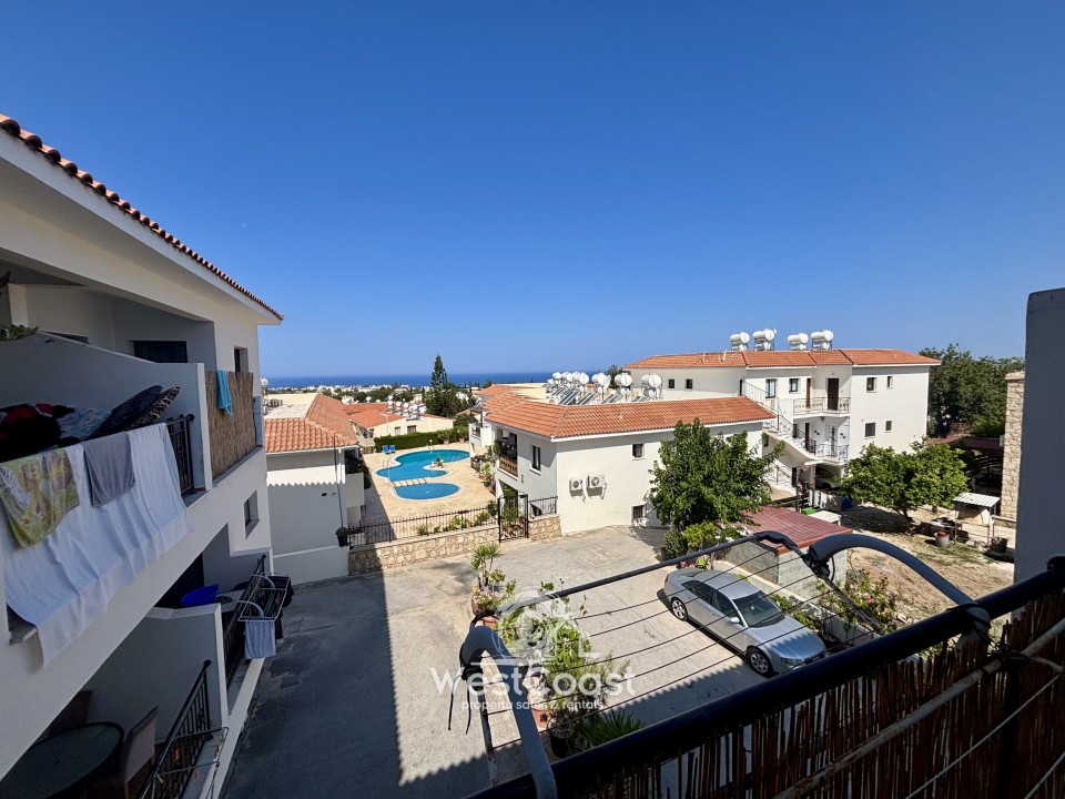 Located in Emba village which has a traditional atmosphere and close to all amenities. The property is on a project of apartments with a communal swimming pool and designated covered parking. This top floor apartment has a spacious open plan lounge, dining, and kitchen area with patio doors leading out to the veranda area which have sea views. There are 2 double bedrooms with fitted wardrobes and air-conditioning. Both bedroom each have their own bathroom. Includes, air conditioning, solar pane...