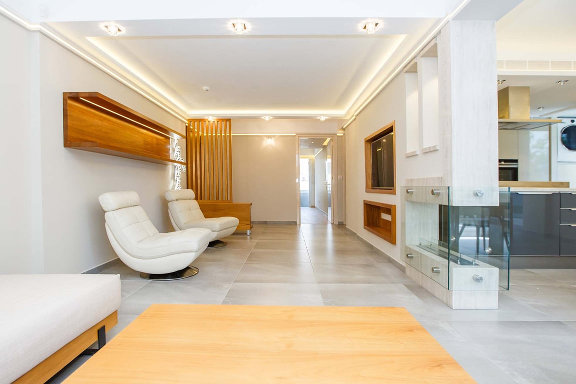 This luxury, fully furnished apartment is located by the beach in one of the most popular and beautiful areas of Limassol, near the Dassoudi Park. The apartment is a two bedroom but it can be easily converted to 3 bed flat. Convenient as a permanent residence and for an unforgettable holiday at any time of the year. The dining area with panoramic windows is easily transformed into an open terrace surrounded by eucalyptus trees. The bio-fireplace in the center of the apartment is a good solution ...