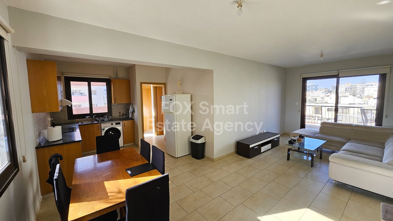 A very well-kept and generously sized 2-bedroom apartment featuring 74m2 of internal space, a 33m2 covered veranda, and a 31m2 uncovered veranda with pleasant city views, located in the heart of Larnaca close to Metro. The property includes a lounge, living and dining areas, an open-plan kitchen, 2 bedrooms and 1 bathroom. It also provides 3 A/C units, solar water-heating panels, a private covered parking spot, and comes fully furnished with all electrical appliances. It enjoys an excellent lo...