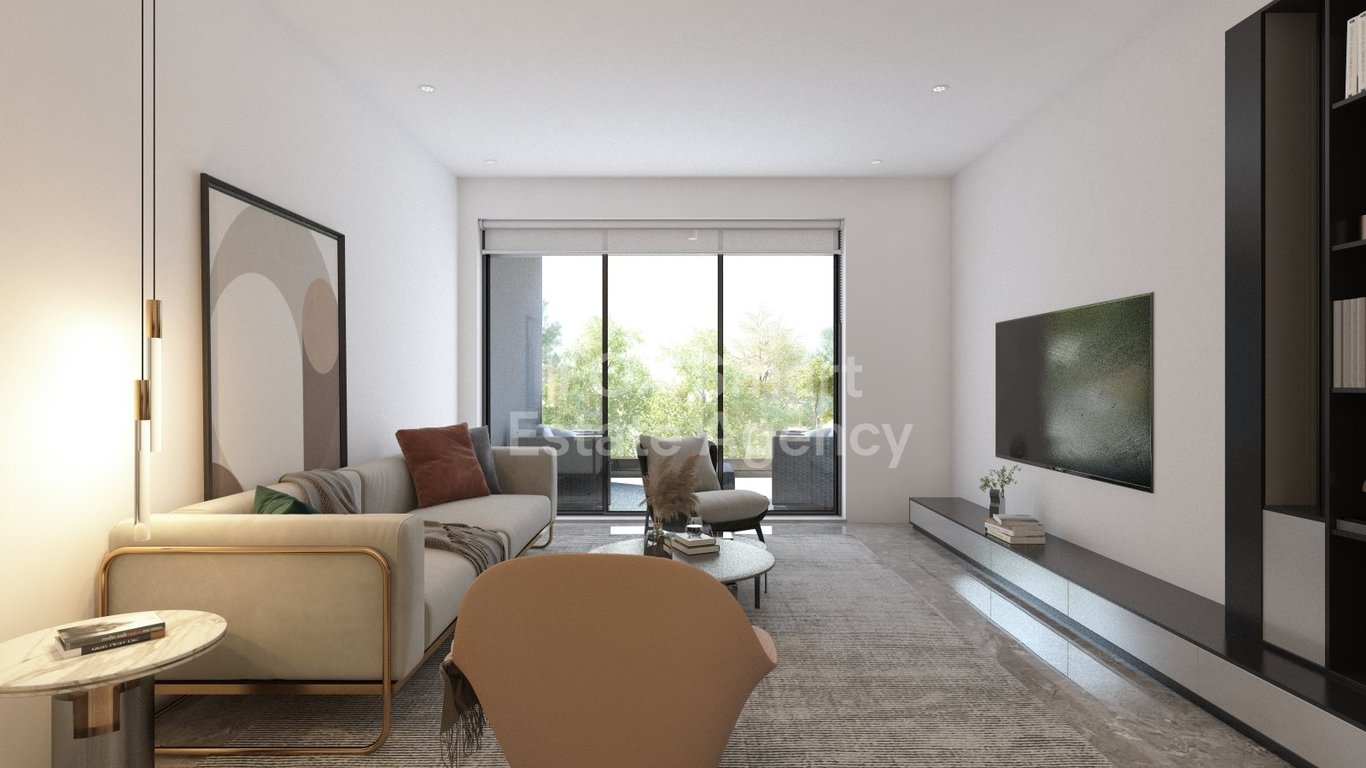 Stylish off-plan 2-bedroom, 2-bathroom apartment situated in the popular Drosia area, offering contemporary living with a strong focus on energy efficiency. The property incorporates photovoltaic panels and is designed to achieve an Energy Efficiency Rating A. The layout features a modern open-plan kitchen and living area, a comfortable master bedroom with en-suite, and quality finishes throughout. Private parking and a storage room are included. Scheduled for delivery by the end of 2027.