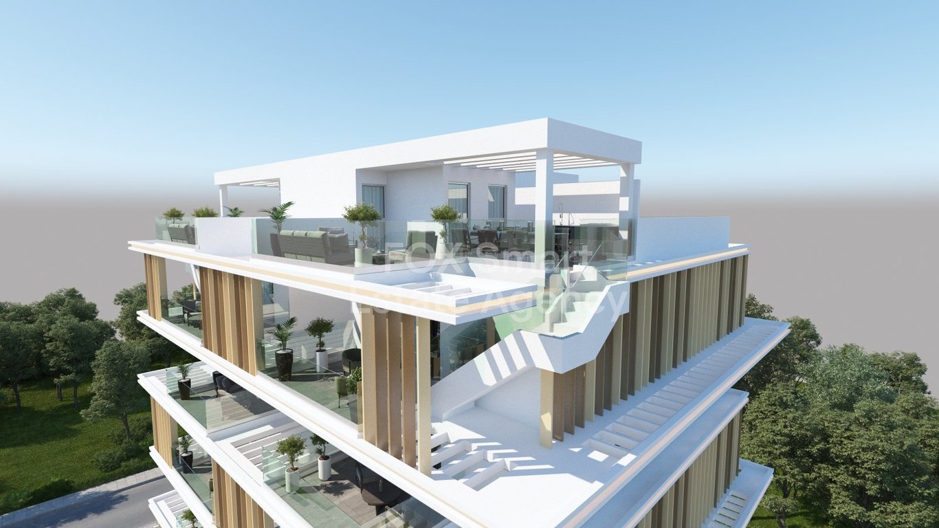Top floor two bedroom apartment for sale with roof garden, in a new project, minutes away from the beach. Open plan living and kitchen area, two bedroom, two bathrooms, storage and a covered parking space. On the roof there is a bathroom and a small room. Delivery date before the end of 2027.