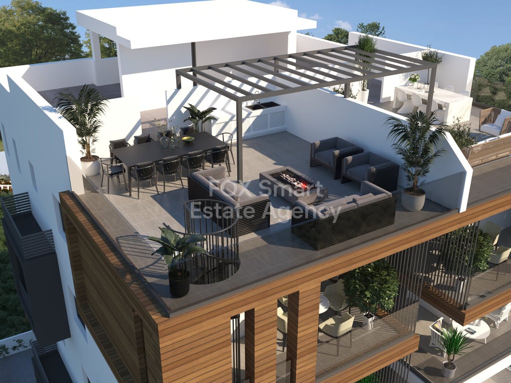 Top floor two bedroom apartment for sale, with 52sq.m. roof garden, under construction, in a residential area, close to amenities. Open plan living and kitchen area, two bedrooms, two bathrooms, master bedroom en suite, large covered veranda, covered parking and storage room. The project will be delivered by May of 2026.