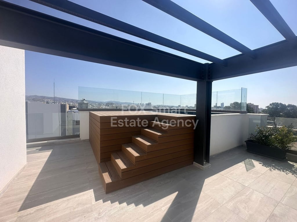 We are delighted to present the final available unit in one of the city's most desirable residential developments—a truly exceptional two-level penthouse that embodies luxury, elegance, and modern design. Spanning two expansive floors, this exquisite residence offers 136 sqm of refined interior space on the main level, featuring three spacious bedrooms, two sleek bathrooms, a guest toilet, sun-drenched balconies totaling 12 sqm, full air conditioning in all rooms, and electric shutters throughou...