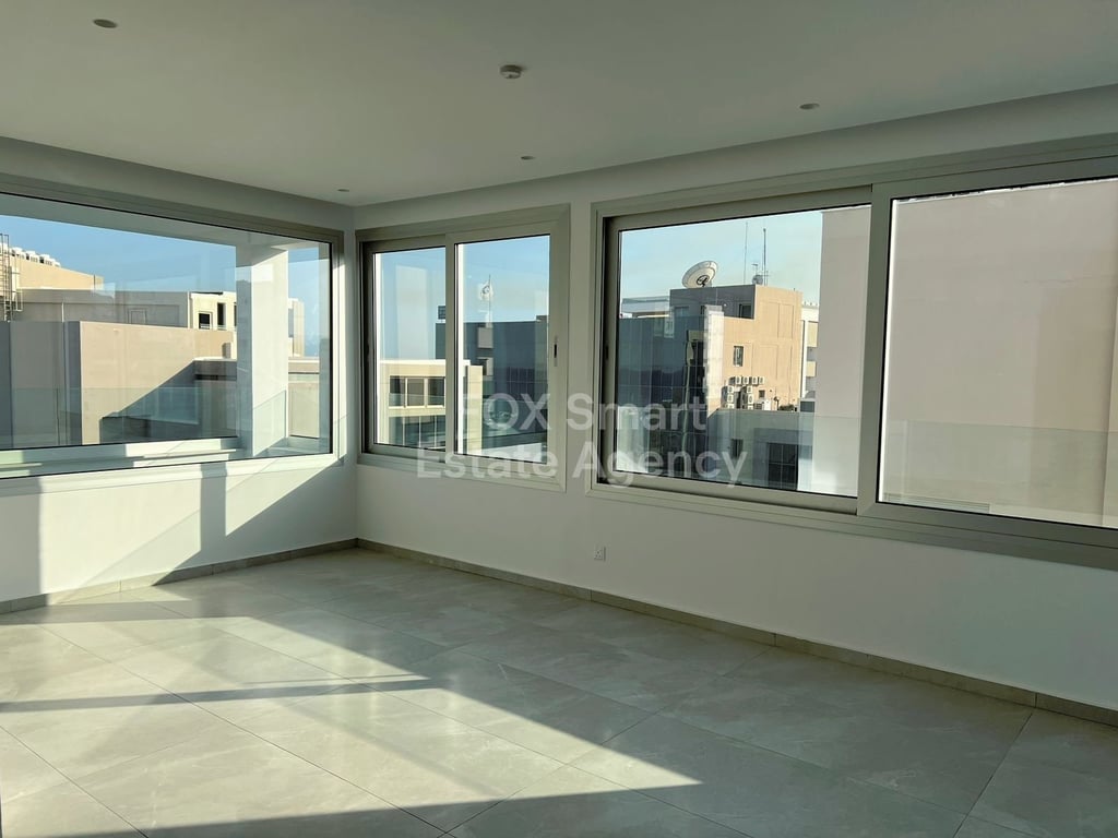 This luxury fully renovated two-bedroom penthouse apartment is located in the sought-after Neapoli area of Limassol. Situated in a quiet residential neighborhood, it offers proximity to all amenities, easy access to the motorway, and is just a short walk from the beach, positioned second line to the sea. The apartment features a spacious living and dining area with an open-plan kitchen. Both bedrooms are generously sized, with the master bedroom boasting an en suite bathroom. There is also a gue...