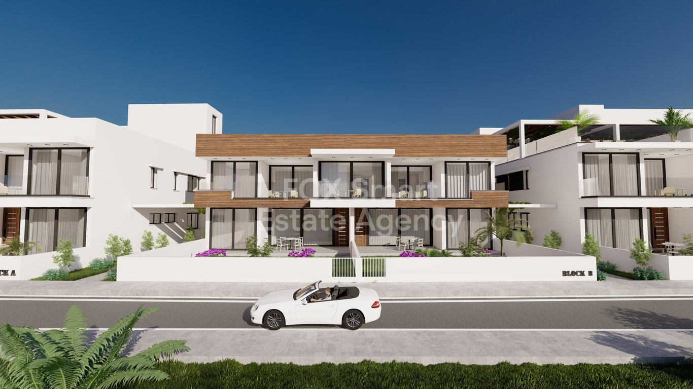 Under Construction 2 Bedroom Apartments of 75 - 87sqm. internal area, 15 - 25sqm. covered verandas, 59 - 70sqm. uncovered verandas or 65 - 76sqm. Roof Garden area on the 1st and the 2nd (Top) Floor. With contemporary design, open plan living areas, high quality standards and materials, the apartments are part of a 5-Block Complex, located close to amenities and only a few minutes drive to the new Marina and Larnaca center. Prices from 245.000 to 317.000 euros + VAT. Completion estimated in su...
