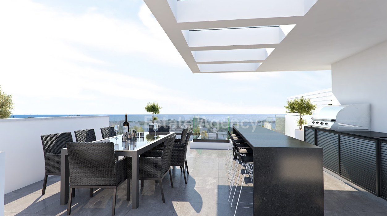 The development comprises two modern blocks, A and B, featuring one, two, and three-bedroom apartments. Each block is equipped with a shared swimming pool, ensuring a high standard of living for all residents. The apartments are designed to offer comfort and convenience in an exceptional location. The apartments are open plan, some overlooking the communal pool, they all have nice sized covered balconies plus covered parking and private storage room. The 2 and 3 bedroom penthouse apartments have...