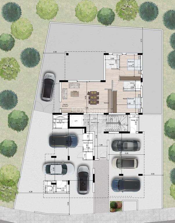 Two bedroom apartment on the first floor with roof garden for sale, in a residential area in Livadia. The project will be delivered by March of 2025. Open plan living and kitchen area, two bedrooms, two bathrooms, large covered veranda, storage room and covered parking space. On the roof there is one bathroom and a storage room.