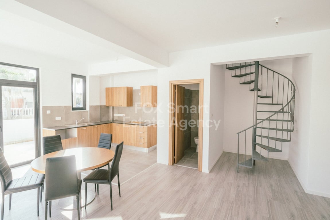 Perfect place to live the Mediterraneanlifestyle, this spacious 3 bedroom Duplex is located just 400 meters from the beautiful beaches of Cyprus. The ground floor is ideal for indoor/outdoor living, the open plan Kitchen/Dining/Lounge area open up to a very spacious (135 Sq.m) private yard, there is ample room to add your own private pool and/or a nice Bar B Q / Alfrescodining area. The upper floor via a gorgeous internal spiral staircase consists of 3 bedrooms, The master bedroom with its own E...