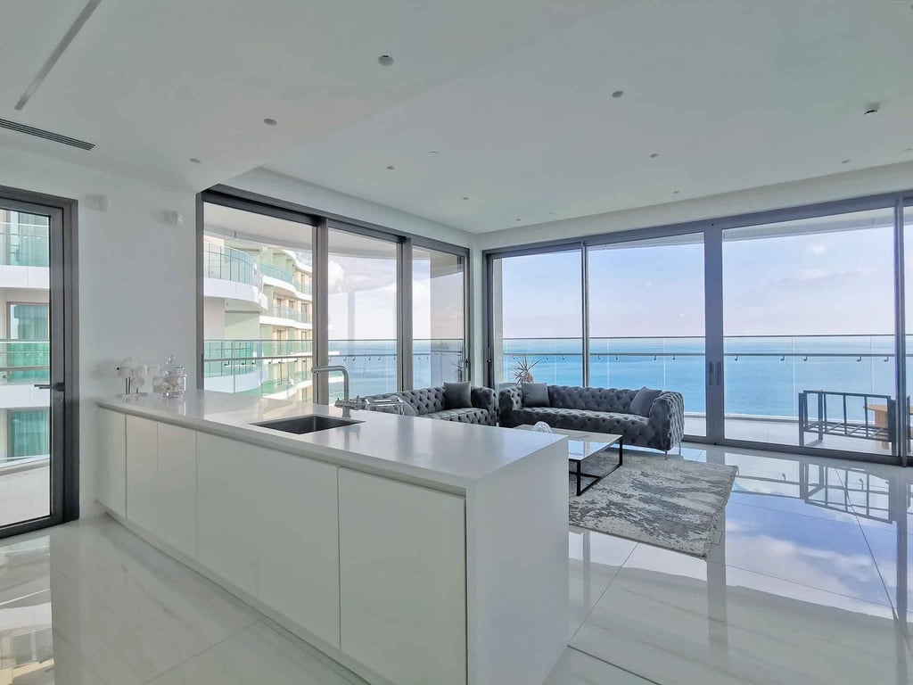 This spacious, ultra luxurious, two bedroom flat, with unlimited sea view, is part of one of the most prominent projects of Limassol, in ultra-desirable coastal Limassol in Cyprus, with breathtaking sea view. The residents will enjoy in house services, concierge, exceptional facilities and a unique high end shopping and dining plaza, 50m just from the sea.
