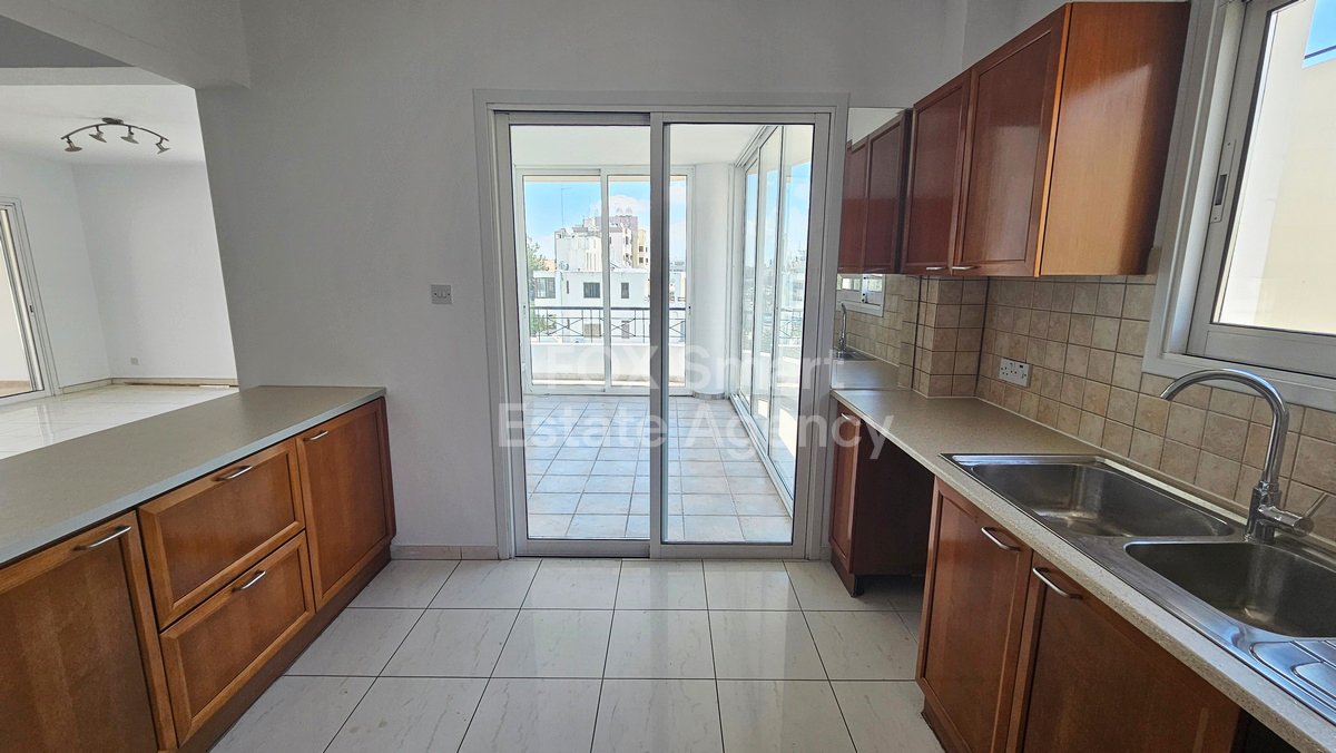 Location: - Whole Floor & Top Floor Three bedroom apartment located in Prime location in Egkomi close Park, walking distance with all amenities, coffee, supermarket, schools etc. - Easy access to all areas of Nicosia and Nicosia centre. External Features: - Very well maintained - Small building Internal Characteristics: - Comfortable, airy, and bright in excellent condition of 108 sq.m covered internal space. Covered Veranda 26sq.m and uncovered veranda 130sq.m - It consists of living an...