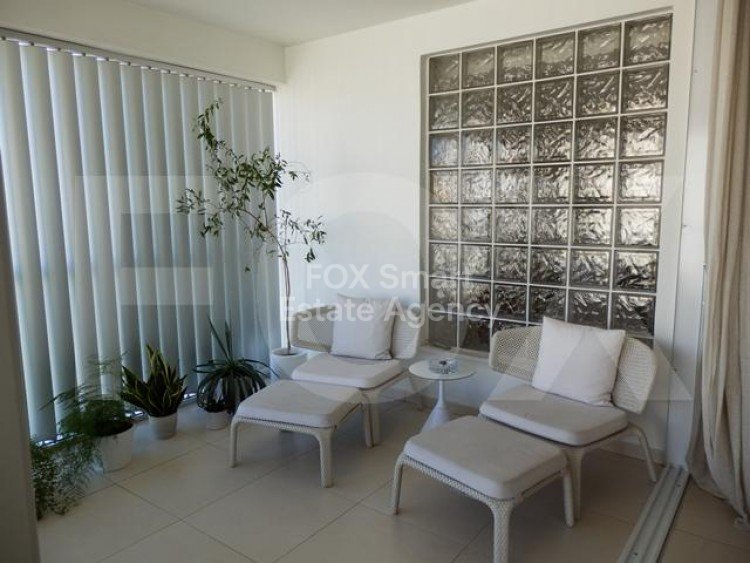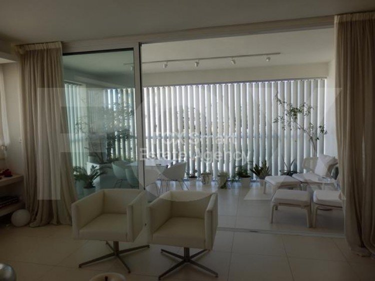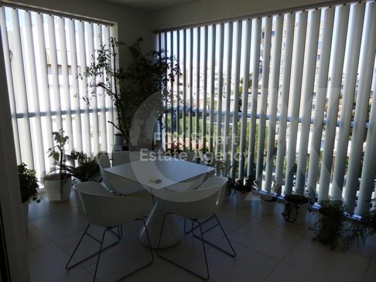 A luxury 3 bedroom modern apartment for in central Nicosia in a dead end quiet road close to the Hilton Hotel. It is a two level apartment with on the down floor a large airy bright living room opening to a large covered veranda with blinds. There is an open plan kitchen with all top class electrical appliances with a small room with a humidor with the ideal temperature of wine bottles to be stored. To add on the down floor of the apartment the master bedroom is placed which is ensuite with a d...