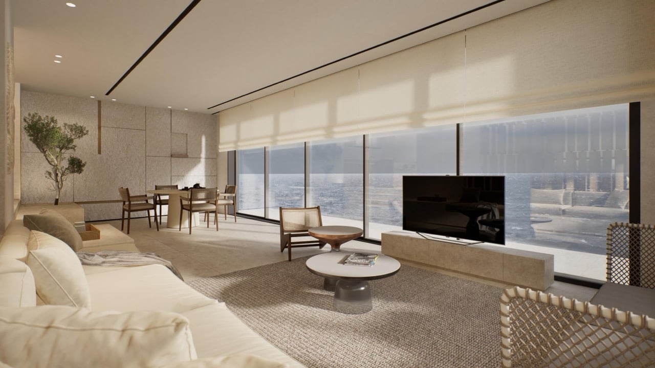 An extremely exclusive property, part of a landmark coastal development that redefines luxury living. This residence is literally on the water’s edge, offering uninterrupted sea views and direct access to a vibrant lifestyle destination. The flats are fully furnished and equipped with electrical appliances, ensuring immediate comfort and convenience. Enjoy a stunning rooftop pool with panoramic views and a private bar, the perfect setting for relaxation or entertaining in style. Residents also b...