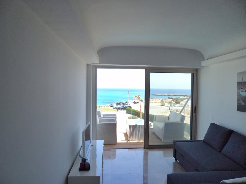 Nestled directly along the pristine coastline, this remarkable apartment offers a rare opportunity to reside in sheer luxury right on the beachfront! Situated a mere 50 meters from two of Cyprus's finest beaches, it boasts uninterrupted panoramic views of the azure sea. Meticulously crafted with top-tier materials and furnishings, the apartment exudes sophistication and elegance. Residents enjoy access to a communal pool and lush garden within the project, perfect for leisurely afternoons or ent...
