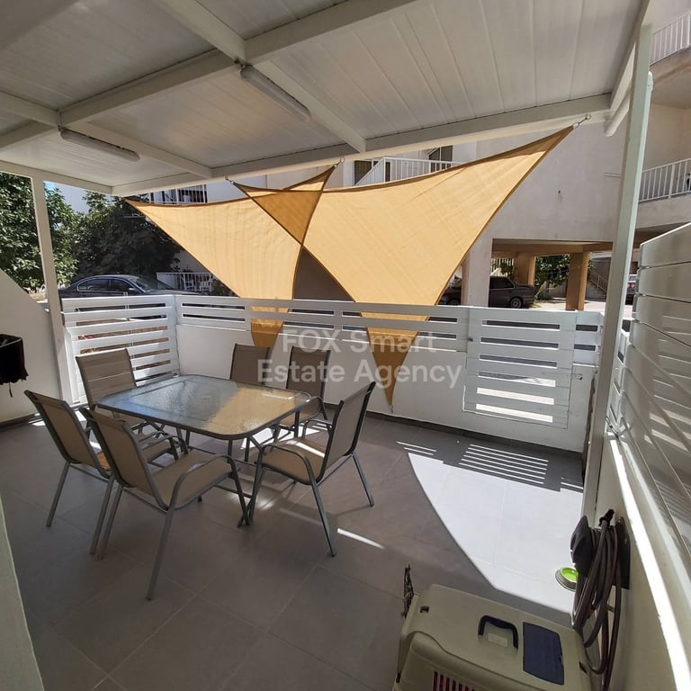 One bedroom ground floor apartment in Kapparis has been renovated in 2020. Very close to Metro, a few minutes drive to all the beaches near by. The kitchen door has access to the parking, so it is easy to bring in the groceries. The living room area has access to the front veranda that is 13m2, fenced in white aluminum fence, and beautfully covered as well. The washing machine is in the bathroom. Call for further details. It has title deeds. Great investment for a holiday home, long term...
