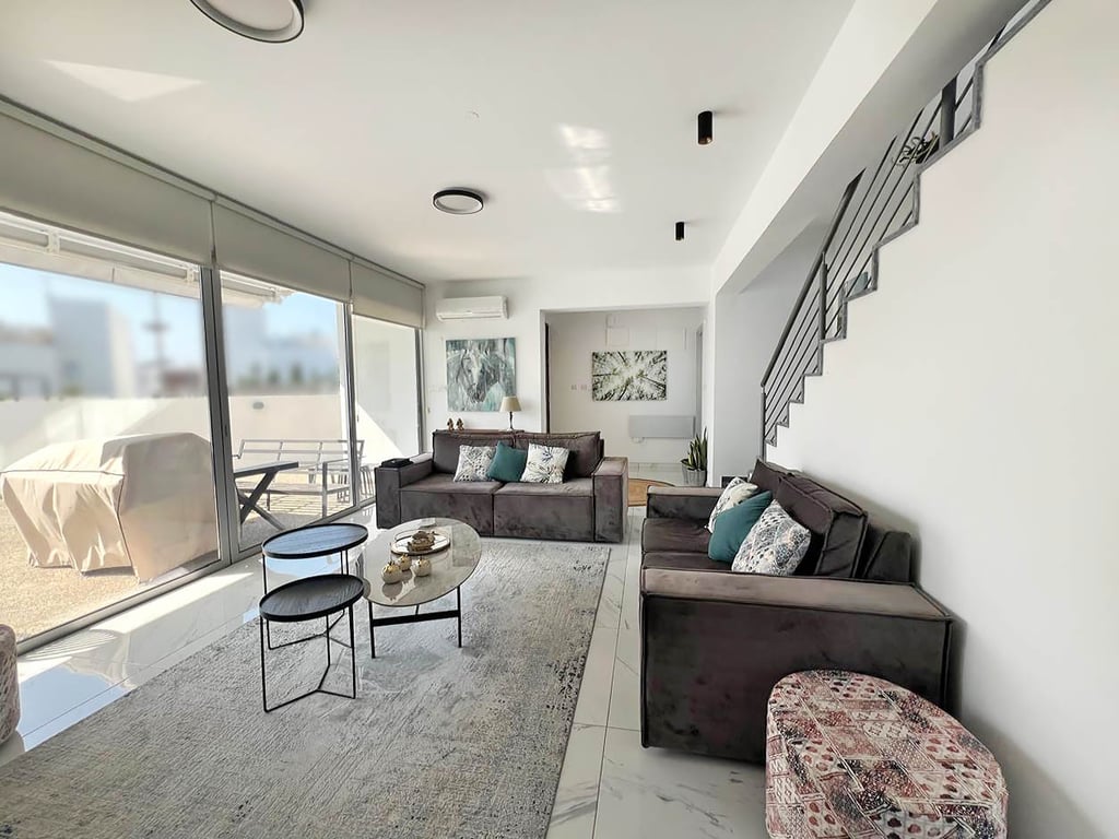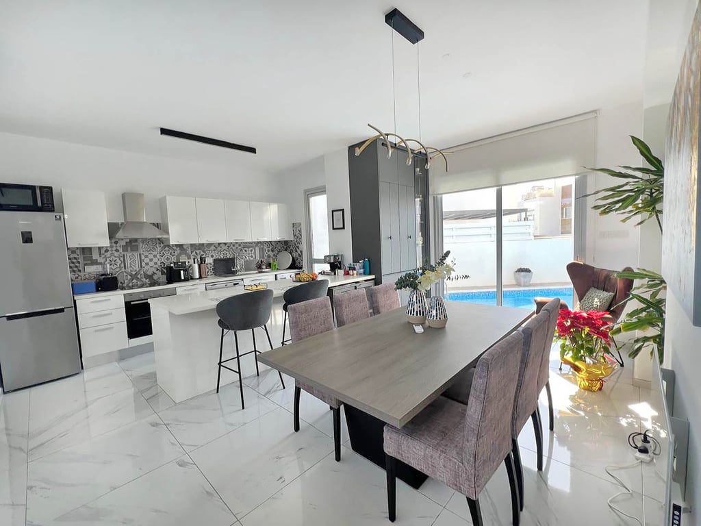 Nestled in the vibrant Ayia Napa area, this stylish villa combines contemporary design with comfort. Enjoy breathtaking views of the Mediterranean from your private rooftop terrace or relax by the pool in complete privacy. The property features a sleek bar/coffee station—perfect for entertaining—as well as energy efficient infrared wall panel heating for year round comfort. Just minutes from beaches, restaurants, and nightlife, this villa is ideal for both living and investment.