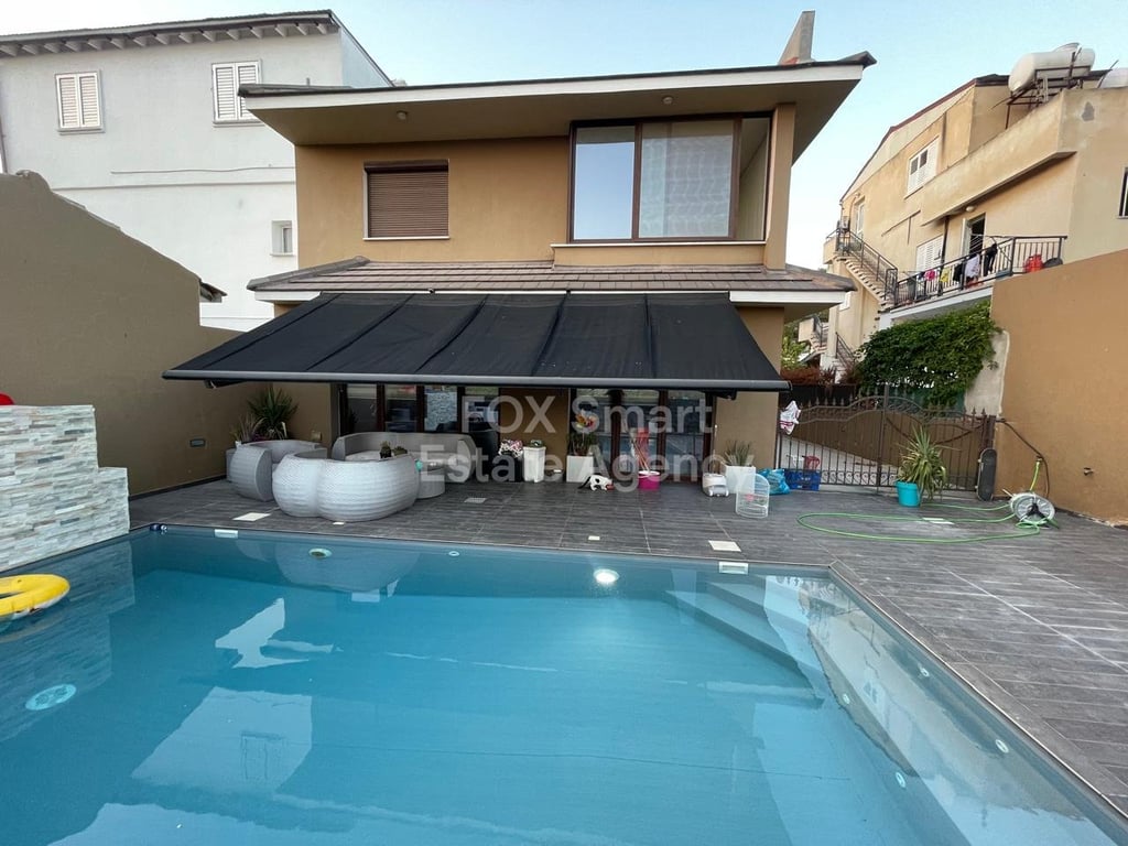 Location Located in the prime residential area of Agios Dometios, this stunning property provides easy access to all essential amenities, such as shops, schools, and services. The neighborhood is highly sought after, offering a peaceful and convenient living experience. External Features Plot Area: 260 m2 Parking: Covered parking plus an additional uncovered parking space. Garden: Landscaped garden with a dedicated play area. Swimming Pool: Private pool with a Jacuzzi and waterfall feature. Outd...