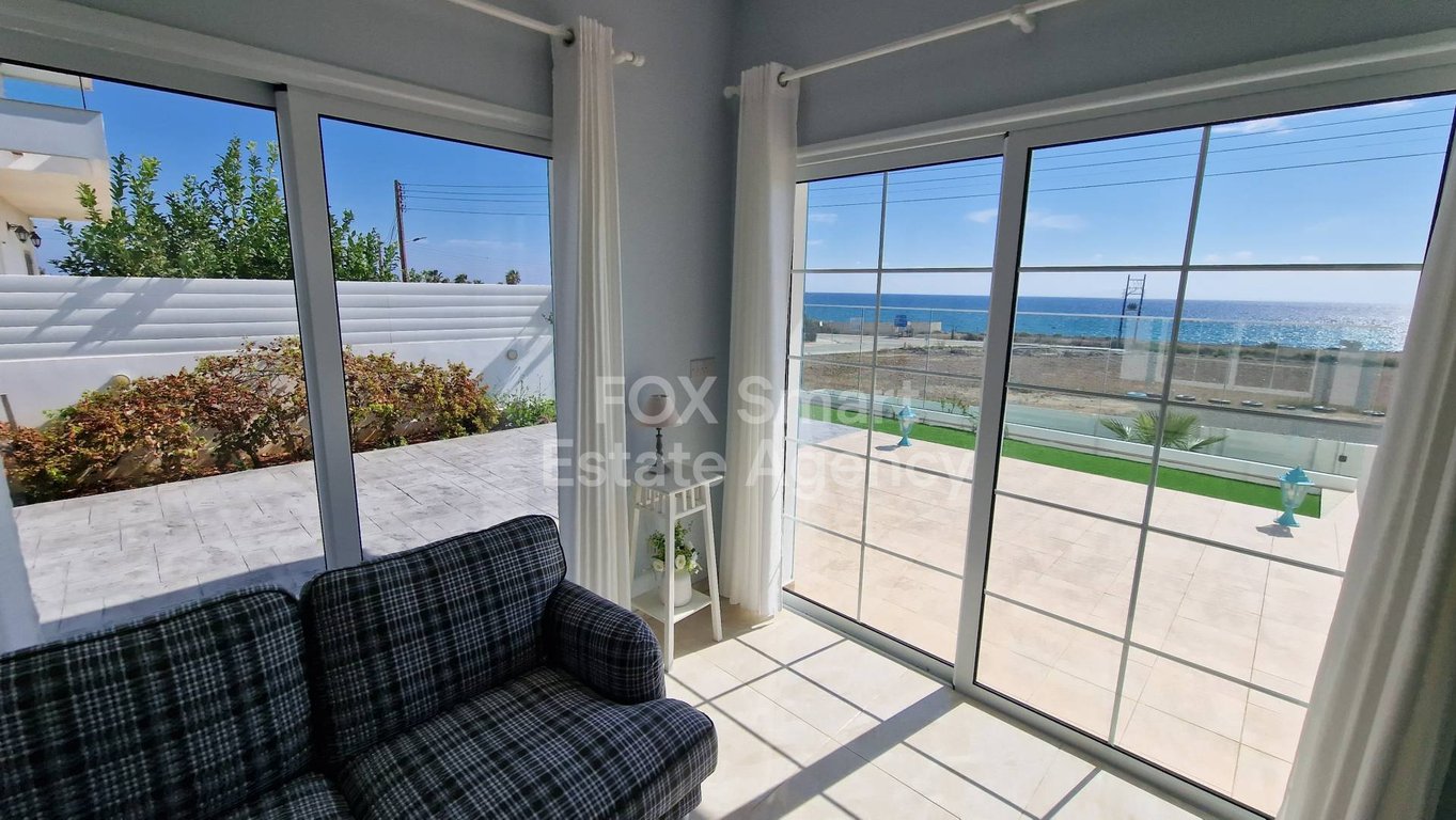 Discover coastal living at its finest in this beautifully presented detached 4-bedroom home, perfectly positioned on the front line in Agios Theodoros with uninterrupted views of the Mediterranean Sea. Designed for comfort, style, and convenience, this fully furnished property is move-in ready and ideal as a permanent residence, holiday home, or investment. Key Features: 4 spacious bedrooms, each with its own ensuite bathroom Guest WC One bedroom conveniently located on the ground floor Bri...