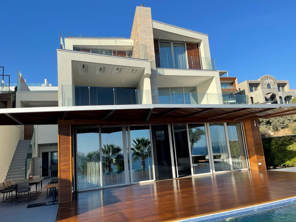 Reference ID: #SA26946 Price details: €10,000,000 This is a one of a kind, custom-designed and built high-profile residence on the shores of the Mediterranean Sea. This exquisite 3-story, 5 en-suite bedroom villa is located in Amathounta, Limassol – an exclusive and in-demand area only a few minute’s walk from fine restaurants, exclusive boutiques and hotels. Only a stones throw away from the beach, one can enjoy the sun reflect onto the azure waters of the Mediterranean from the villa’s unobs...
