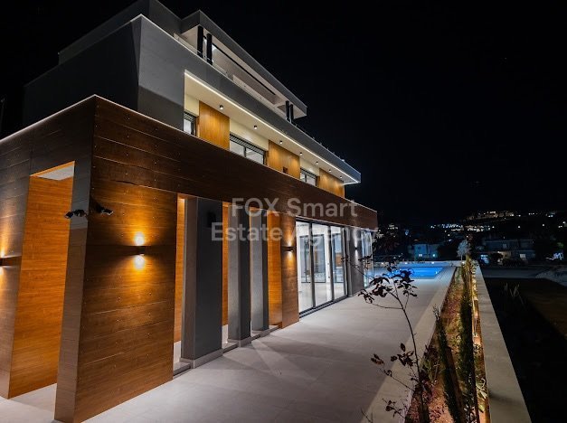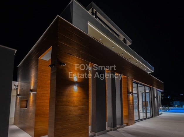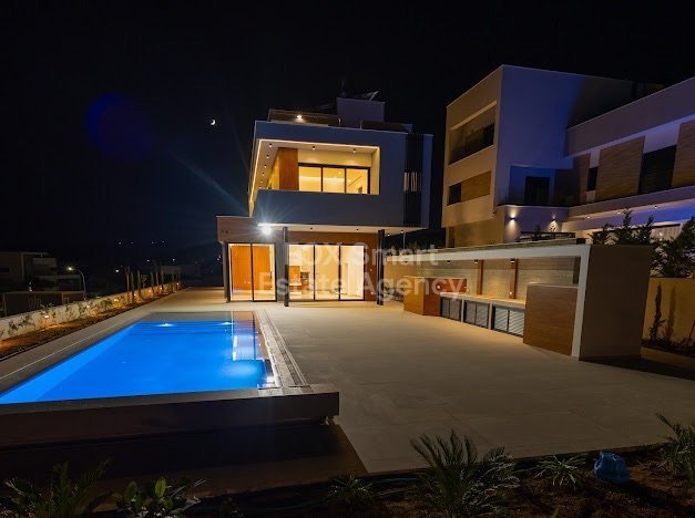 Luxury five bedroom Villa in the exclusive area of Agios Tychonas within easy access to the beach road and all amenities. Quality materials and design make this a comfortable modern family home. High ceilings, feature lighting, marble floors, smart house system, underfloor heating and VRV concealed units are some of the features. Focusing on natural materials and naturral shades with wooden features. Sitting/lounge/dining areas, with feature dual fireplace, guest wc, Italian kitchen with granit...