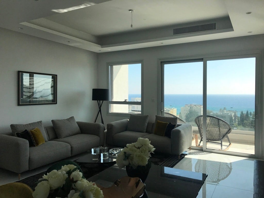 For sale 2 bd flat with unobstructed sea view. Under floor heating, VRV a/c, furnisher, 2bathrooms, open plan kitchen, electric shutters, wardrobes, high celling, parking, store room. In the ready gated complex with s/p and children’s playground. Ready Title Deeds. Covered parking, under floor heating, electric shutters within walking distance from the beach, surrounded by amenities, gated entrance, communal swimming pool, gated children’s playground