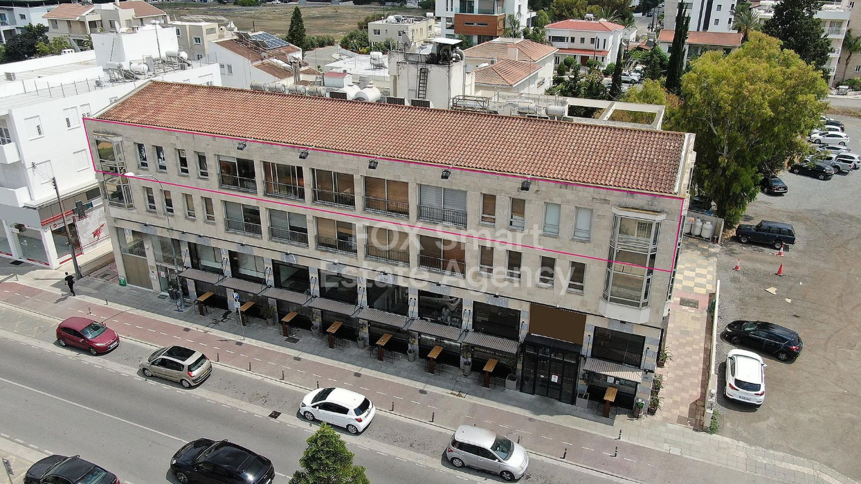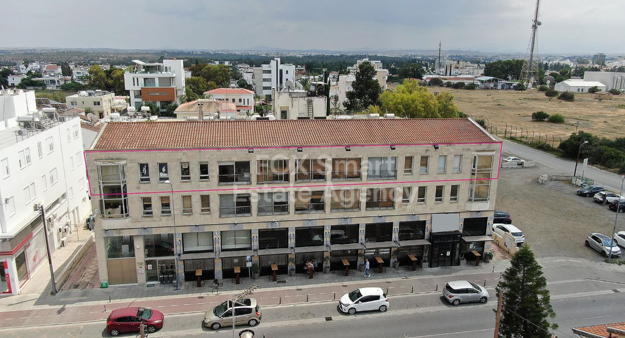 Location • This professional whole-floor office unit is situated on the 2nd floor of a commercial building in Aglantzia, Nicosia. • It benefits from a prominent position with a generous 43-meter frontage on the building’s north boundary. • The property is ideally located in a walking distance of Limassol Avenue, offering excellent accessibility and visibility for businesses. External Features • The office unit includes a combination of covered and uncovered verandas, providing pleasant out...