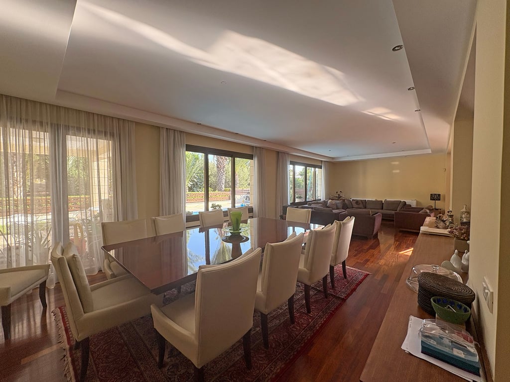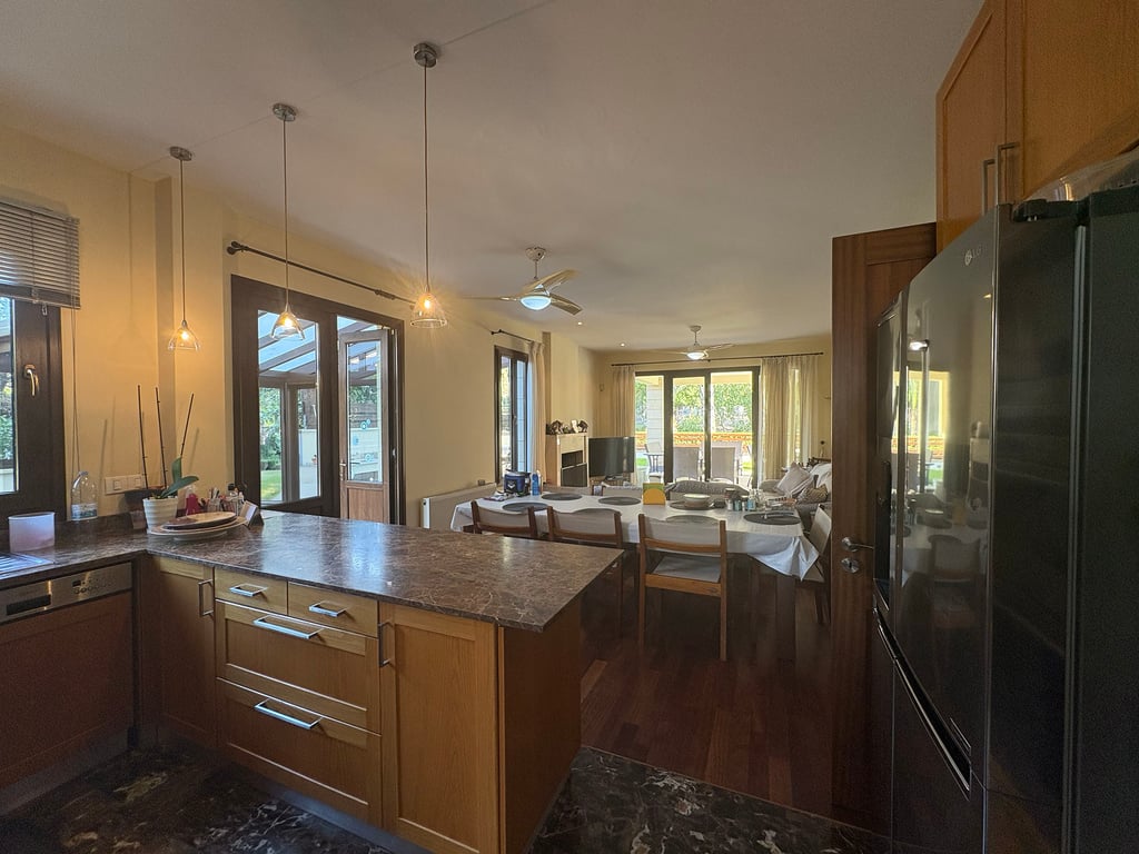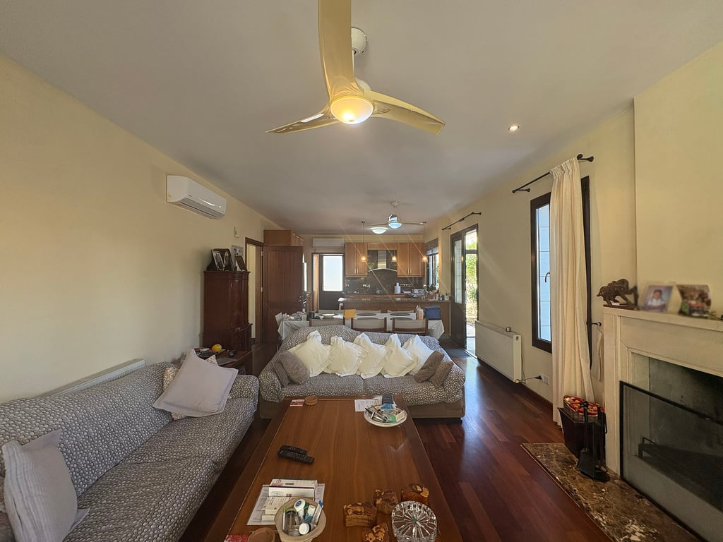 Located in a peaceful and desirable neighborhood of Platy Aglatzia, this elegant home sits at the end of a quiet cul de sac near a green area, pedestrian walkway, and primary school. Built in 2006, it features bright, spacious interiors with open plan living and dining areas that overlook the garden and private pool. The kitchen flows into a cozy family room with a fireplace, and there is a guest ensuite on the ground floor. Upstairs are three large bedrooms, including a master ensuite, and a ho...