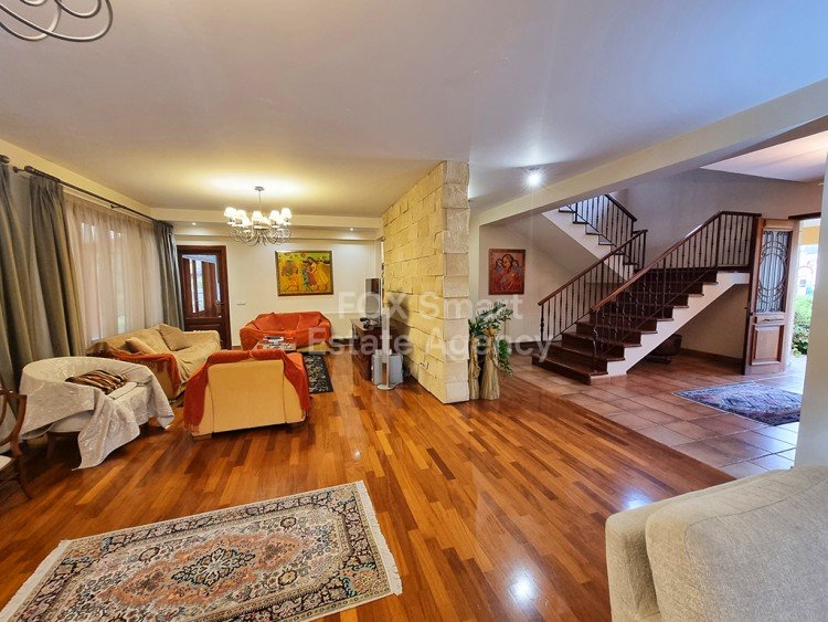 Beautifully house located in a quite neighborhood opposite a green Park in dead- end street in Platy Aglanzias.With easy access to the city center and at the same time to the highway. It is situated close to all amenities.This luxury home features plenty of amusement areas with big windows that make it very bright.covered areas are 388 sq.m plus 50 sq.m covered veranda. The plot is 570 sq.m surrounded with trees and grass.The ground floor living space features with wooden parquet flooring, spac...