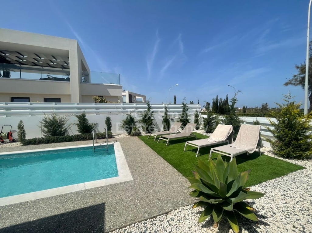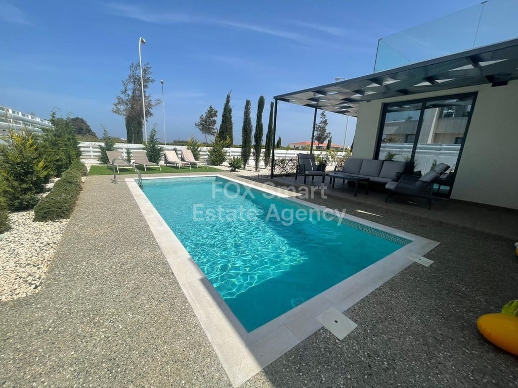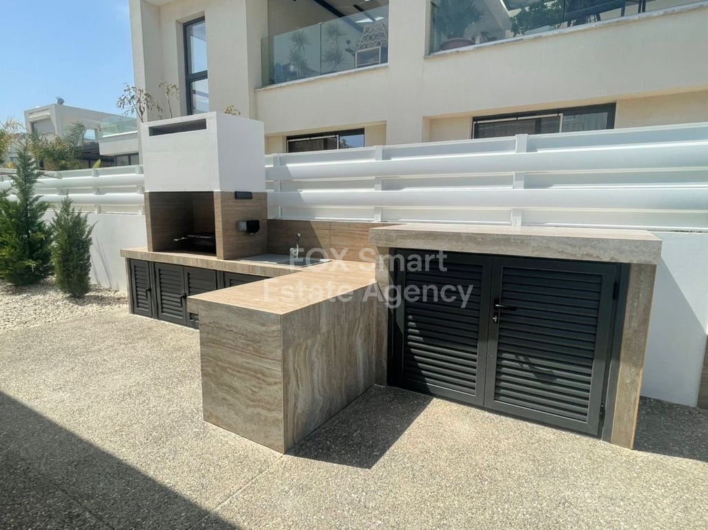 Modern house located in gated area where you have access to all beautiful beaches of the area. The house is fully furnished and equipped. Has 123m2 of a Roof Garden, where you have amazing view of the sea. The house is one level, but again it is spacious. Bedrooms are spacious and master bedroom has an ensuite. There is also a private swimming pool and a barbecue area.