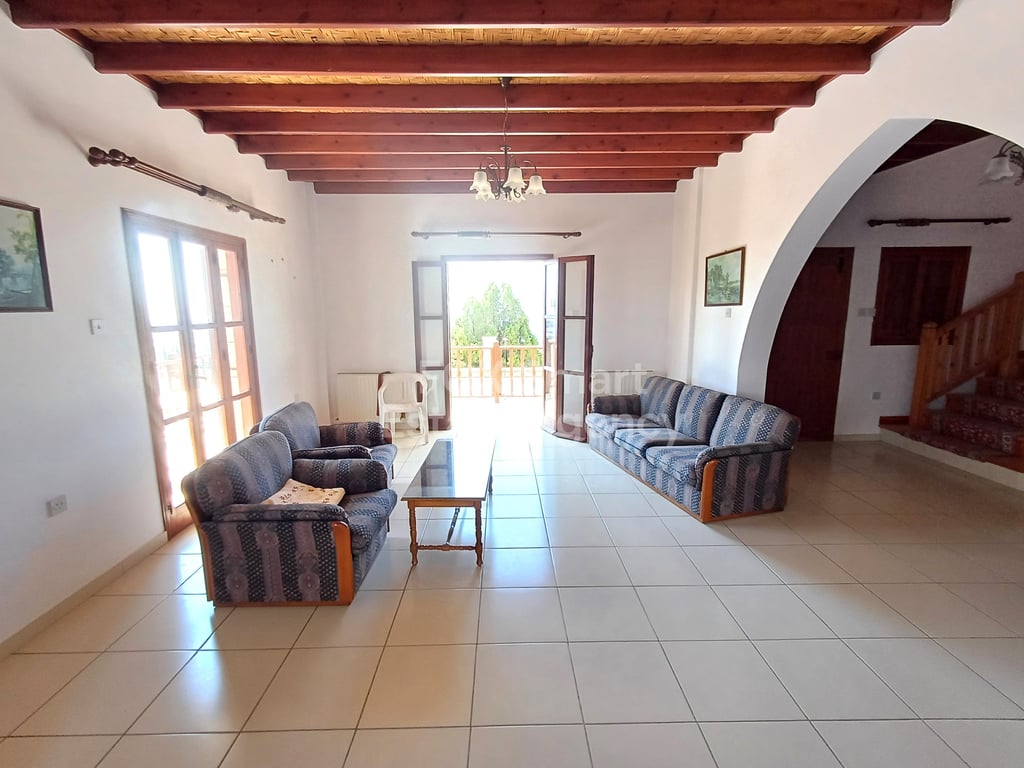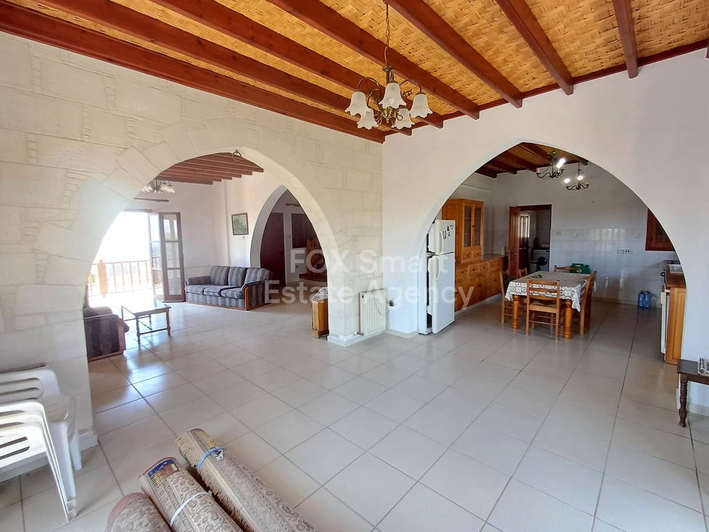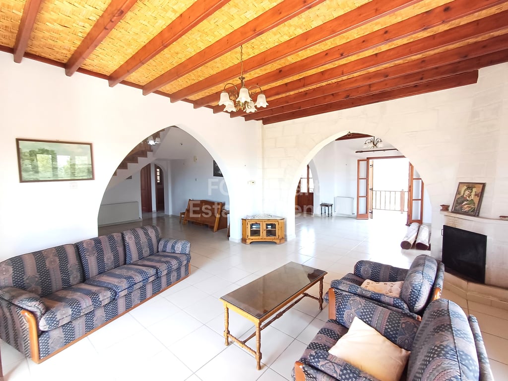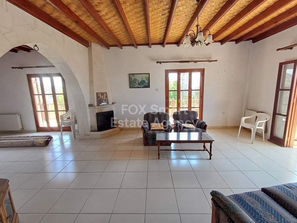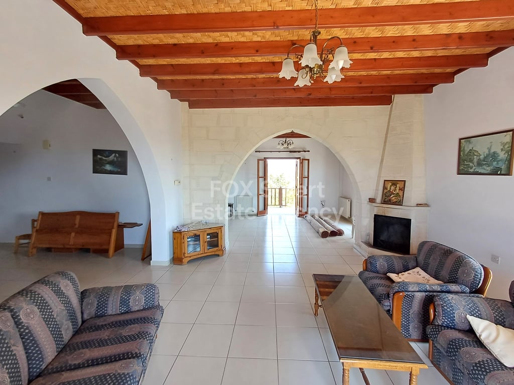 A traditional four bedroom house for sale, with great views all around, 10min drive to Larnaca. As you enter there is an open plan living and dinning area with a fire place, a large kitchen a small kitchenet, one bedroom and a shower room. On the upper floor three big bedrooms, master bedroom ensuite and a whole bathroom. There is a large garden with traditional oven and there is water well. The land is 11401sq.m. Title deeds are in process.