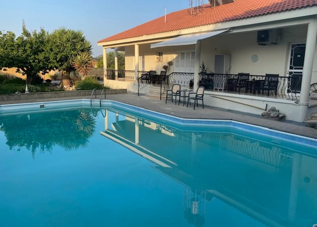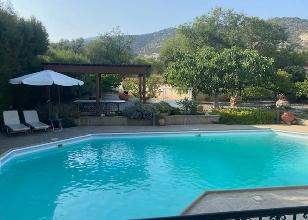 Reference ID: #SA36676 Price details: €580,000 One level detached 3 bedroom house for sale in Apesia, Limassol district, 11 km from Limassol, 2 km from Heritage School in the quiet and picturesque village of Apesia. Features of the house Solar panels central heating air conditioners billiards a library a recreation area huge storage room in the attic a 12x7 m2 swimming pool heated pool Separate title deed is available. Property area: 215m2 internal area Large plot with mature garden located...