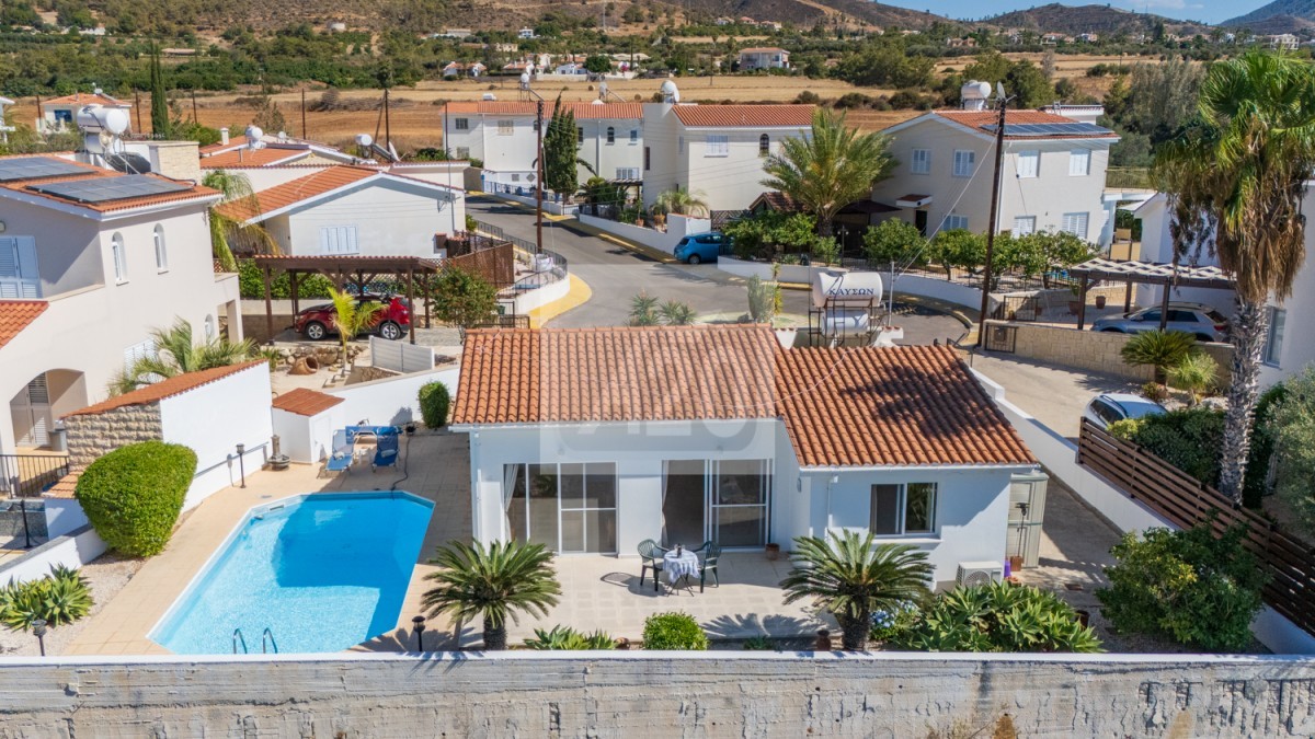 Nestled in the tranquil village of Argaka, this stunning two-bedroom bungalow offers an idyllic lifestyle with magnificent uninterrupted sea views. The property is a true gem, providing a perfect blend of comfort, privacy, and an unbeatable location, and it will be sold partially furnished, making it practially a turn-key solution for your new home. The bungalow features a light-filled and inviting open-plan living and dining area, with large patio doors that open directly onto the pool terrace...