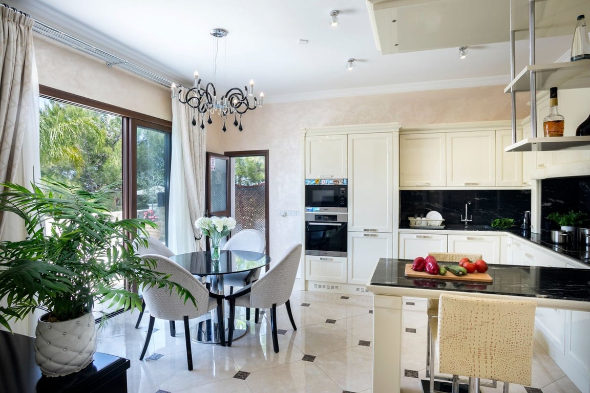 Exquisite five bedroom detached villa located only 290 meters from the sea in a gated estate for complete privacy and security. Luxurious open plan kitchen, dining and living areas making this a perfect entertaining space. All the bedrooms benefit from fitted wardrobes and en-suite bathrooms while the three on the first floor boast balconies with magnificent sea views. The fourth bedroom is on the ground floor and accessed by internal stairs is a further bedroom on the lower level. Outside the...