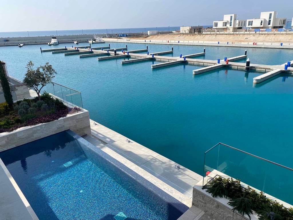 This luxurious beach villa is designed to offer residents a truly classy and modern environment for living, with comfortable interiors, lush gardens and spectacular unobstructed views of the Mediterranean Sea. Large expanses of glass are optimally placed to promote the breathtaking views around the villas.All villas are designed with a modern, open-plan concept, with primary spaces oriented towards the sea, they are fully detached and are comprised of four levels – ground level, first floor, roo...