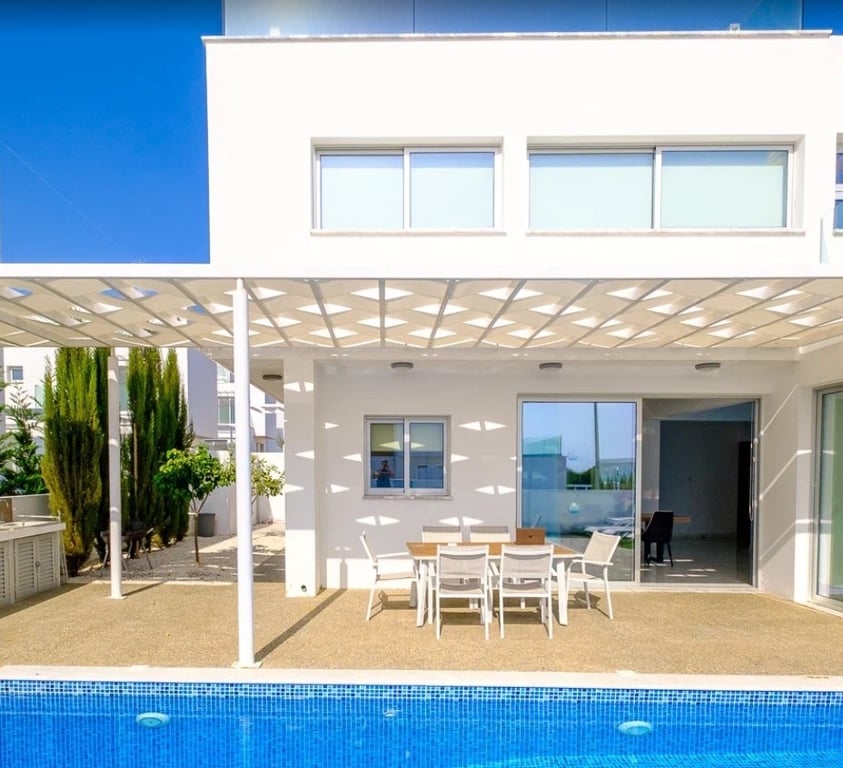 Reference ID: #SA30869 Price details: €550,000 This spacious luxury two-storey villa is located on the hillside. You can enjoy stunning views of the sea and Aya Napa. On the ground floor you will find a fully-equipped kitchen, dining area, comfortable living area (with access to the terrace and private pool), storage and a WC. The first floor has three spacious bedrooms and a bathroom. The master bedroom has its own bathroom with a shower as well a balcony with a sea view. The entire second i...