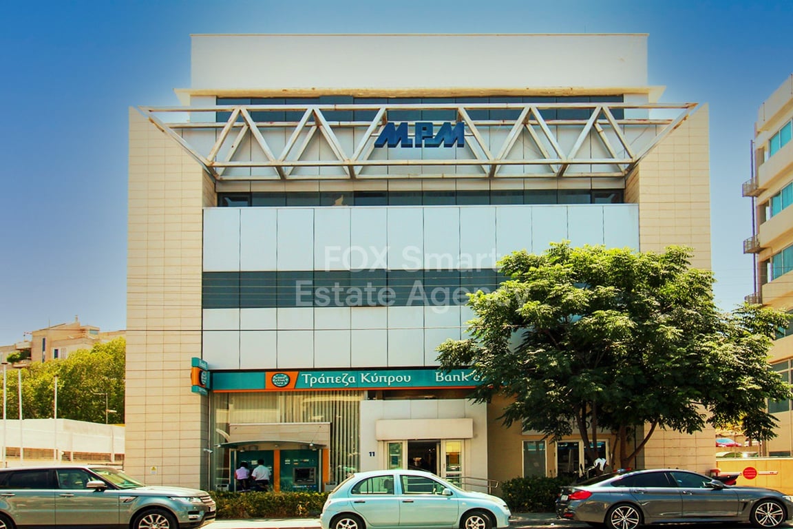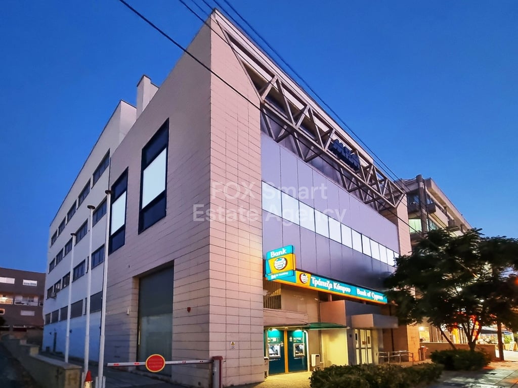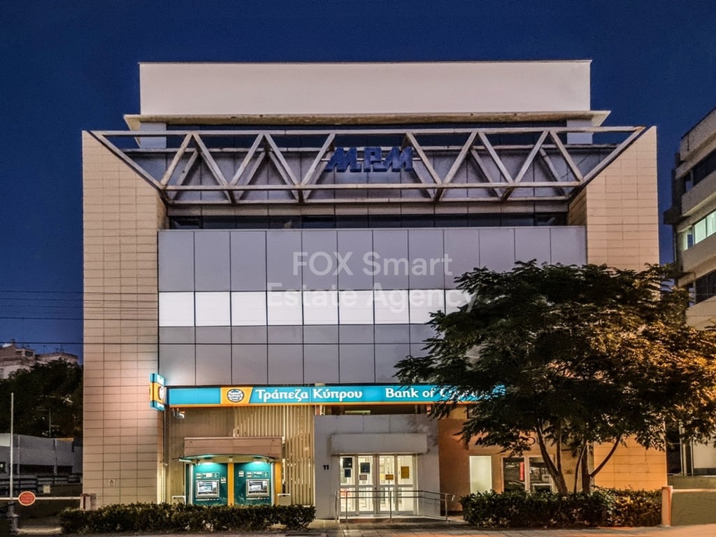 Location • The building is located on Digeni Akrita Avenue near the Agios Antonios Μarket. • It is on a busy commercial Avenue. External Features • It has big frontage on the avenue, it adjoins two streets and a pedestrian street. • There are several parking spaces both in front of the building and on neighboring streets. Internal Characteristics • On the ground floor, there is a store with a mezzanine, which is ed by the Bank of Cyprus. • There are three additional floors of offices. Each floo...
