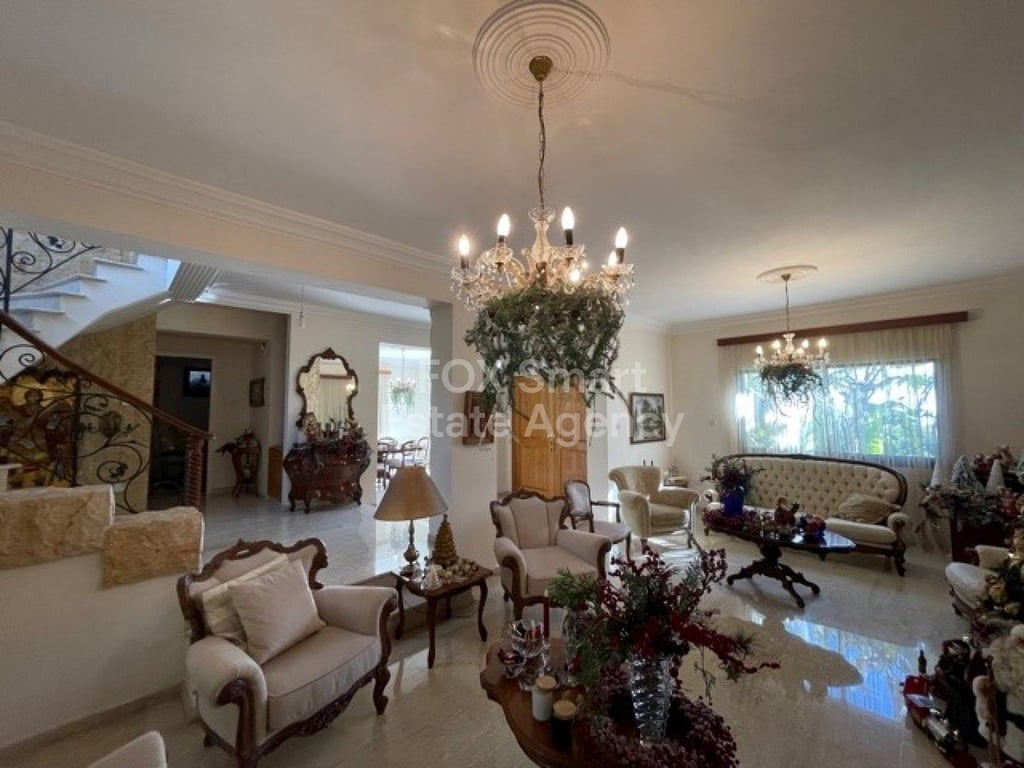 This lovely detached 4 bedroom house is in the sought after location of Agios Athanasios.Privately gated with drive through, engulfed by beautiful landscaped gardens.Entrance has comfortable sitting/lounge area, separate dining area which accesses the kitchen and the tv room, guest wc.Patio doors lead to the outside sitting area with covered pergolas, granny flat/maids quarter.The upper level has a spacious landing/office area. 4 bedrooms, master en suite, main bathroom, utility area.Beautiful s...