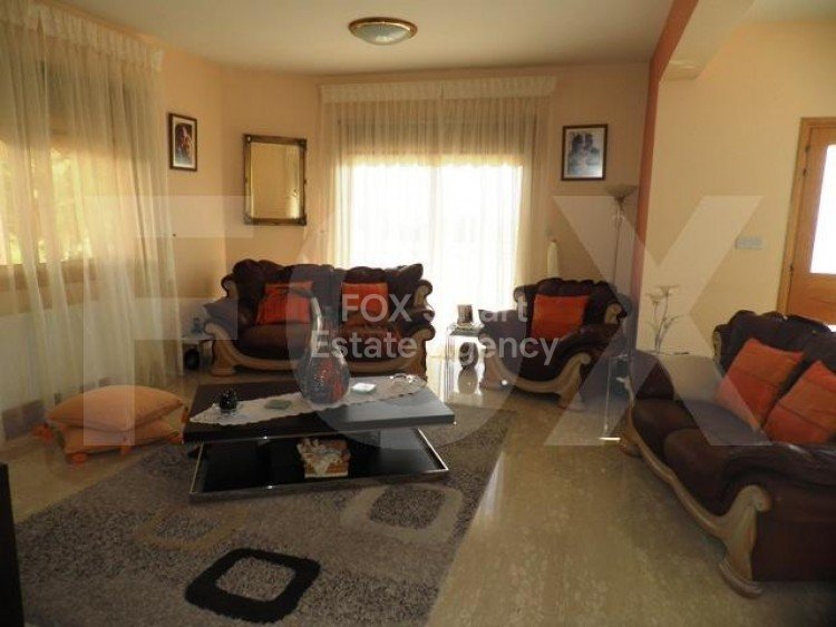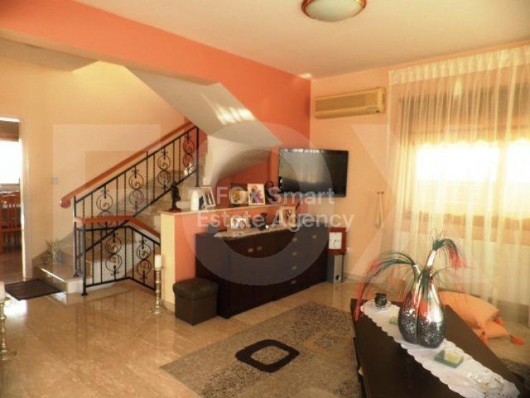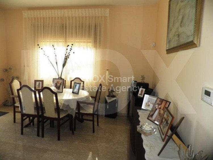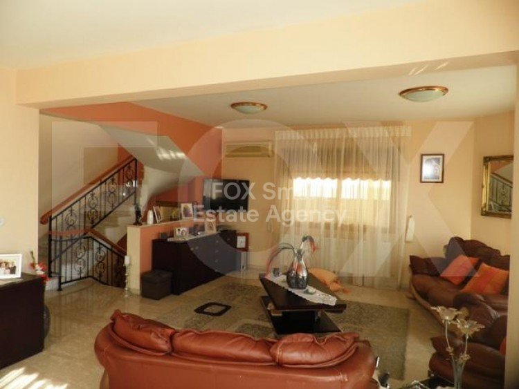 Resale 4 bedroom detached house plus maids room with swimming pool in Ag. Athanasios. All bedrooms are spacious, master bedroom en-suite, spacious separate kitchen with lounge and utility room, sitting and dining area. The total covered area of the house is approx. 330sqm with nice sea view. A/c and C/h all over the house, double glazed windows, electric shutters for windows, security system and covered kiosk by the swimming pool. Title deeds available.