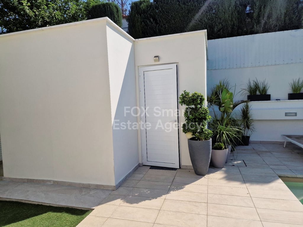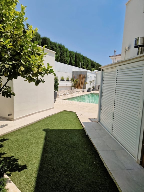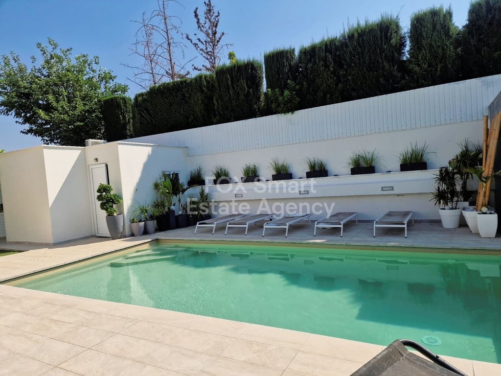 This luxurious 5-bedroom detached house in Agios Athanasios, Limassol, boasts an elegant design with a private garden and swimming pool, located in a peaceful residential area with easy access to amenities and the motorway. The property features a spacious living and sitting area with a double-sided fireplace, and a modern, open-plan kitchen fully equipped with electrical appliances and ample storage. Four of the large, luxury bedrooms come with en-suite bathrooms, with the master bedroom enjoyi...